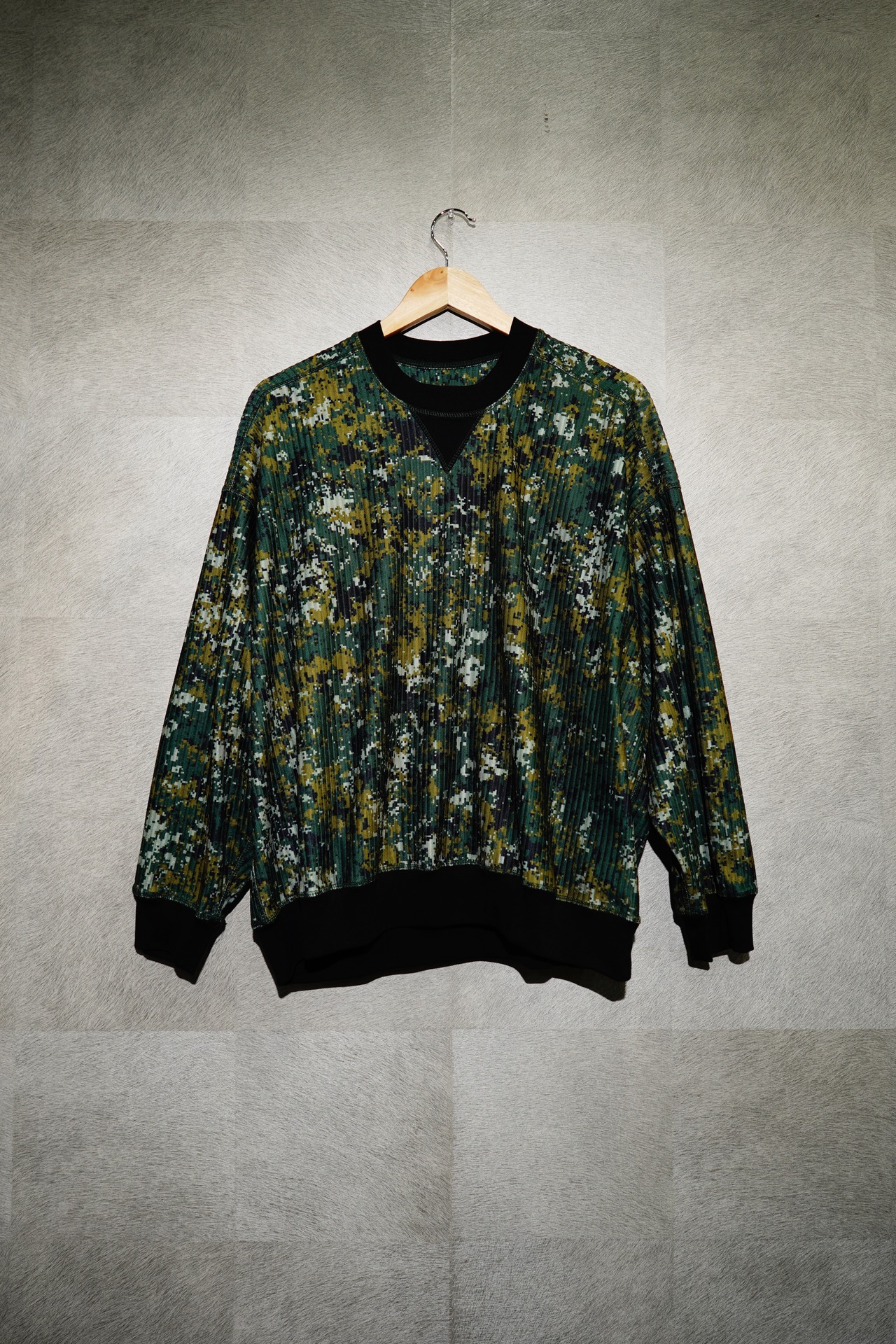 Lsize ・Made with ribbed fabric ・Relaxed fit ・Rib knit tight crewneck ・Cut & sew