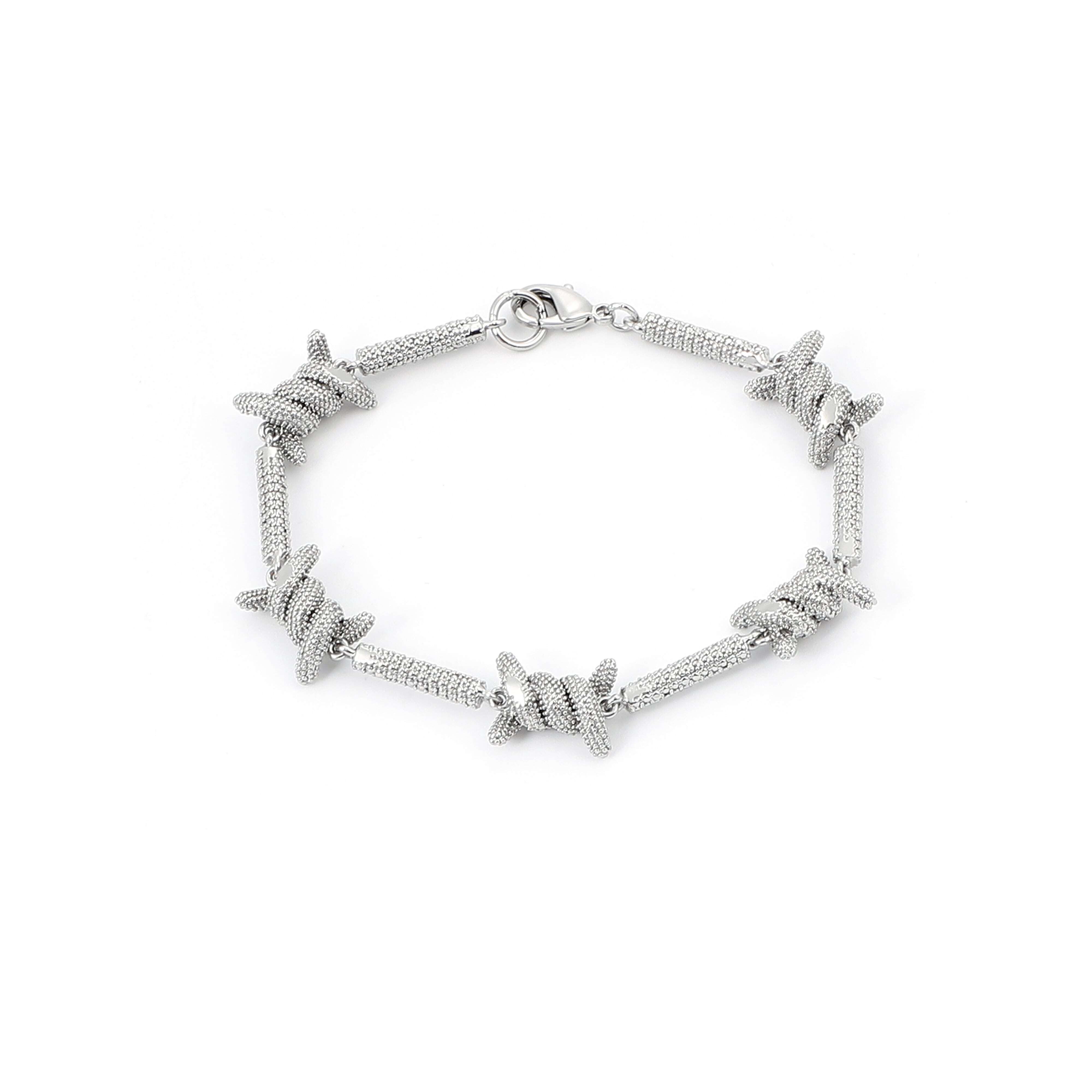 ブレスレット 長さ:18cm 7inch 有刺鉄線モチーフにしたオシャレなブレスレット。 単品でも存在感のあるデザインで、重ね付けにもお使いいただけます。