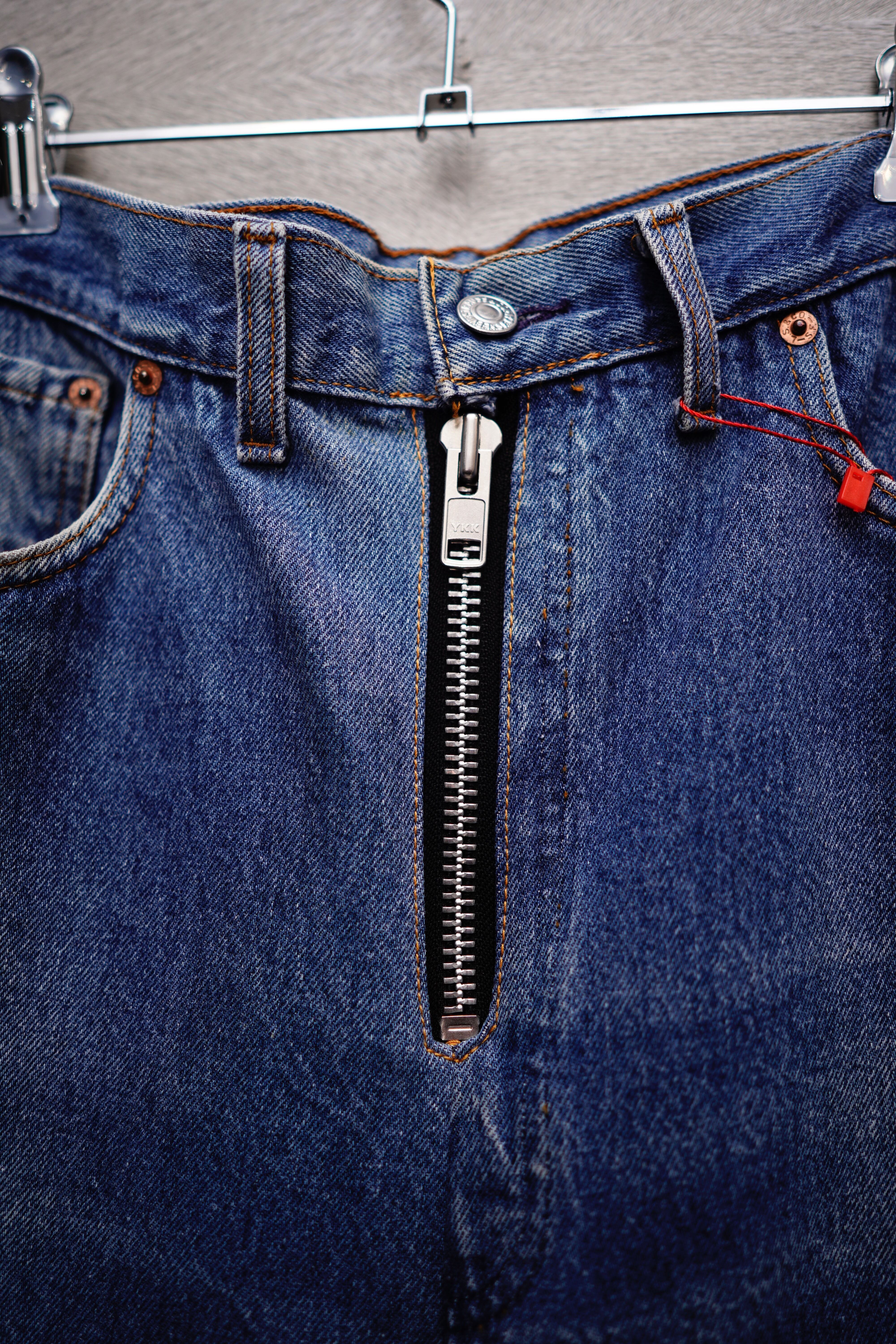 CSNV再構築バギーデニム フロントには特注のYKK巨大ファスナー付き Size38 ウエスト87 股上40 股下24