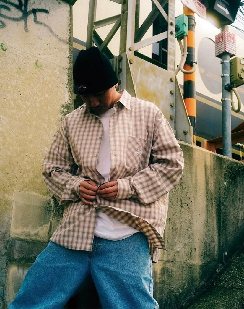 オーガニックコットンを使用したブロード素材のオンブレチェック、ドラム式の特殊な洗いをかける事で、きめ細かく凹凸のあるシワ感が特徴の素材感。ブランド独自のゆったりとしたシルエットに設計されたボタンダウンシャツ